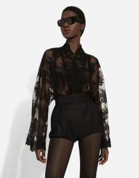 In the Black Sicily Collection, black, the absolute protagonist, becomes sensual black, sheer black, Dolce&Gabbana black. The key concept is “Black on Black”. Playing around with proportions, volumes, layered fabrics and sheer details, this style becomes absolute, bold and sexy. Unique and unmistakable, it is conveyed through the contrasts between glossy and matte fabrics, lines, volumes and special details, thereby expressing a woman’s various personalities and the true identity of Dolce&Gabbana. Stretch cady high-waisted panties: • Black • High-waisted • Front slant pockets • Elasticated leg openings • Zipper fastening at the back • The model is 175 cm tall and wears a size IT 40 • Made in Italy External composition: 55% Cotton 32% Viscose 08% Silk 03% Spandex 02% Polyester Internal composition: 92% Silk 08% Spandex