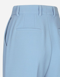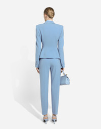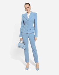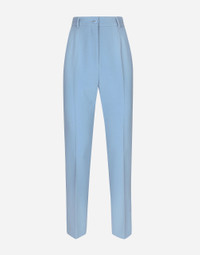 In the FW 24/25 DNA Collection, the rules of classic tailoring have been reworked with an innovative feel. New raschel weave techniques feature on micro-jackets and coats, and original textures are woven on trench coats, skirts, jacquard suits and shirts. The color palette made up of Nero Sicilia black, Milky White and Ocean Blue is also original. The iconic bags in fine nappa leather and “Pyton FC Machine” finish off the looks. Tailored double wool crepe pants: • Light blue • Dolce high waist • Front slant pockets • Welt back pockets • Belt loops • Inner leg: 74 cm • Hem: 17 cm • Zipper and cannete-covered button with DG logo • The model is 175 cm tall and wears a size IT 40 • Made in Italy External composition: 100% Virgin Wool
