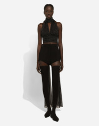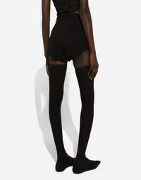 In the “WOMAN SS 24” Collection, the imagery of old Sicily interacts with the masculine, with sensual shapes, lace, nude tones and delicate overlays, to create pieces that move amid clean silhouettes, the elegance of the 1960s, the contrasts of black and white and luxurious textures. The designers are reworking their signature style and their iconic Sicilia black color to convey an aware, seductive and confident Sicilian WOMAN who is imbued with sensuality. High-waisted stretch wool panties: • Black • Dolce high waist • Zipper and button fastening • The model is 175 cm tall and wears a size IT 40 • Made in Italy External composition: 100% Virgin Wool