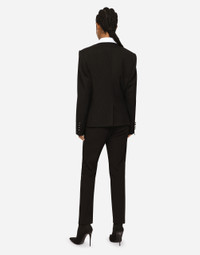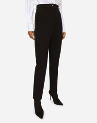 Wool pants with duchesse tuxedo band: • Dolce high waist • Front slant pockets • Welt back pockets • Belt loops • Inner leg: 74 cm • Hem: 17 cm • Zipper and canneté-covered button with DG logo • The model is 175 cm tall and wears a size IT 40 • Made in Italy Care And Details External composition: 81% Virgin Wool 14% Silk 4% Polyester 1% Spandex