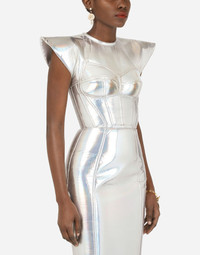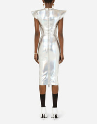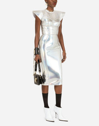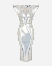 Holographic jersey calf-length bustier dress