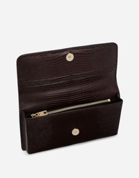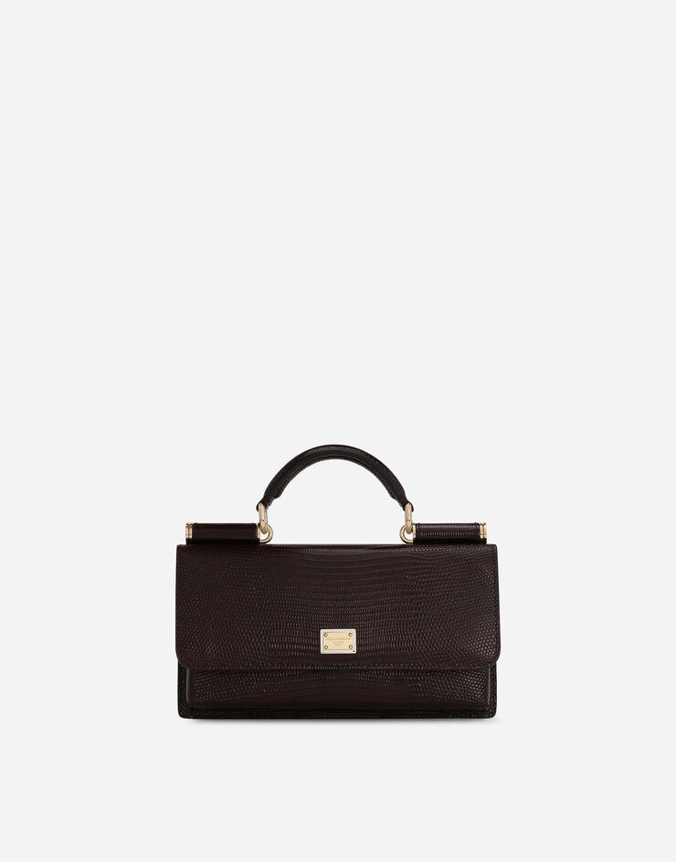 Iguana-print calfskin mini bag: • Burgundy • Front flap with hidden magnetic fastening • Logo tag featuring two metal plating finishes • Top handle and detachable chain strap • Iguana-print calfskin lining • Zipped inner pocket with branded slider and four card slots • Item comes with a branded dust bag • Measurements: H11 x L20 x D3 cm • Made in Italy Care And Details External composition: 100% Calfskin Internal composition: 95% Calfskin 5% Viscose