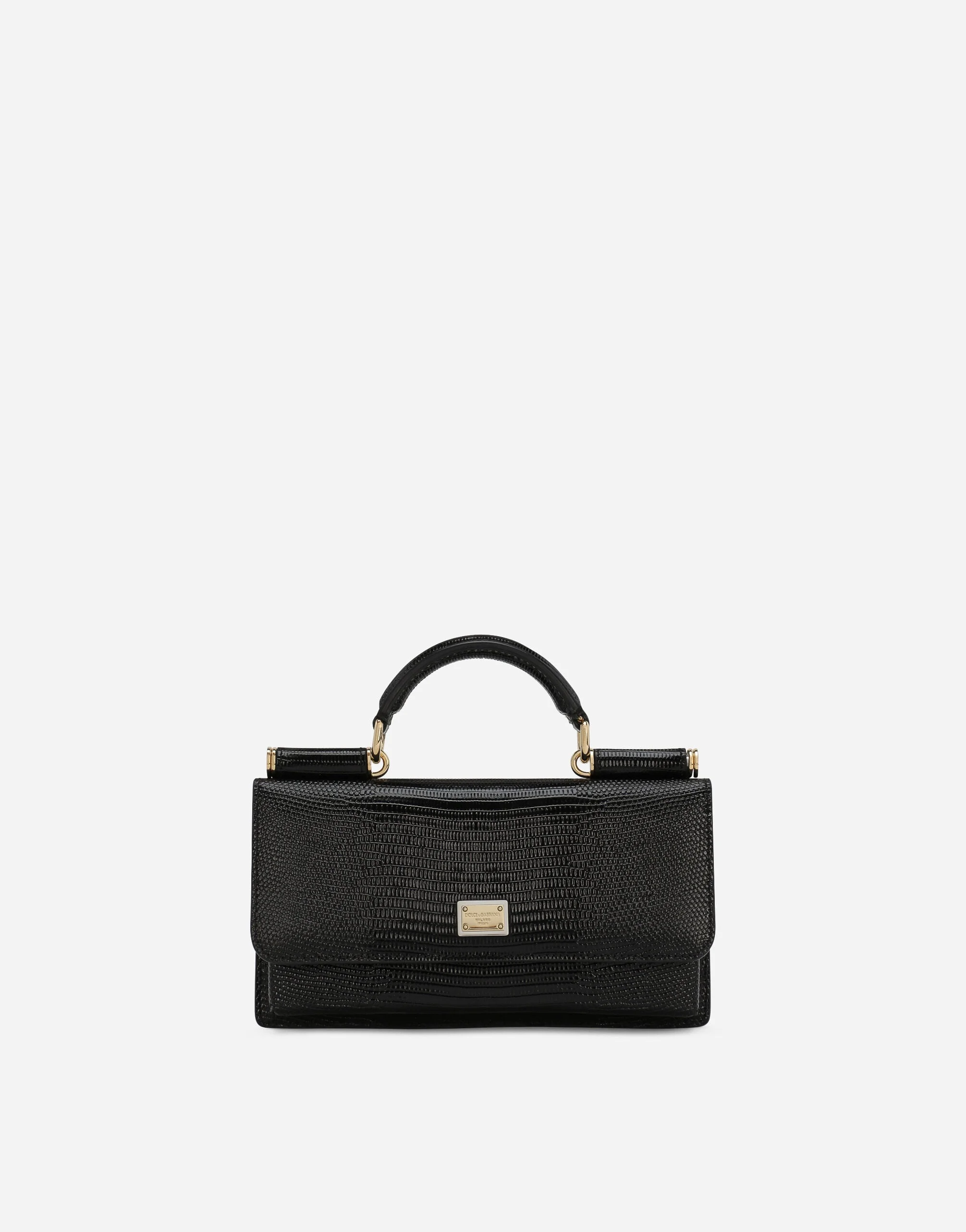 The accessories collection is getting a new function. Practical and versatile, this mini bag comes in iguana-print calfskin with the logo tag featuring two metal plating finishes. Iguana-print calfskin mini bag embellished by the logo tag featuring two metal plating finishes: • Black • Front flap with hidden magnetic fastening • Logo tag featuring two metal plating finishes • Top handle and detachable chain strap • Iguana-print calfskin lining • Zipped inner pocket with branded slider and four card slots • Item comes with a branded dust bag • Measurements: H11 x L20 x D3 cm • Made in Italy External composition: 100% Calfskin Internal composition: 95% Calfskin 5% Viscose