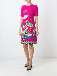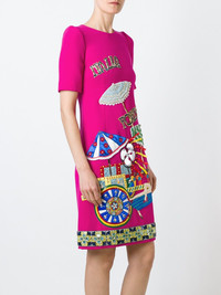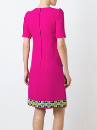 embellished A-line dress Pink and multicoloured wool embellished A-line dress from Dolce & Gabbana featuring a round neck, beaded embroidery, short sleeves, a concealed rear zip fastening, an a-line shape skirt, a short length and a straight hem. Made in Italy Composition Outer: Wool 100%, Cotton 30%, Polyester 25%, glass 15%, Silk 10%, Polyamide 10%, Brass 5%, Crystal 5% Lining: Silk 94%, Spandex/Elastane 6% Washing instructions Dry Clean Only