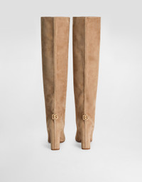 This suede boot offers a touch of casual elegance, perfect for those looking for a sophisticated yet casual style. Suede boots: • Taupe • Jackie New shape • Sophia heel • Leather outsole with DG logo fire stamp • Leather heel insole with label • DG crossed logo • Gold plating • Item equipped with a black cotton bag and black embossed box • Heel height 90 mm • Made in Italy External Composition: 100% Lambskin Internal Composition: 57% Calf Leather, 43% Goatskin