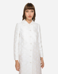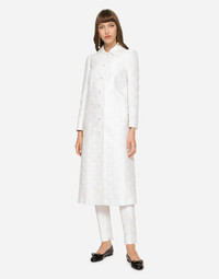 Jacquard coat with all-over DG logo: • Shirt collar • 3/4 sleeves • Vertical pockets • Leopard-print stretch satin lining • Canneté-covered button fastenings with DG logo on the front • The piece measures 118 cm from the rear collar seam on a size IT 40 • The model is 175 cm tall and wears a size IT 40 • Made in Italy Care And Details External composition: 43% Cotton 34% Polyester 23% Silk Internal composition: 97% Polyester 3% Spandex