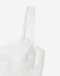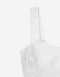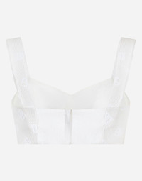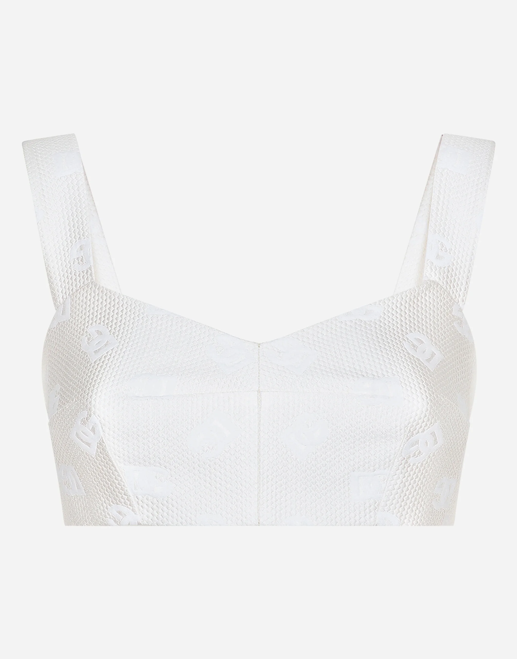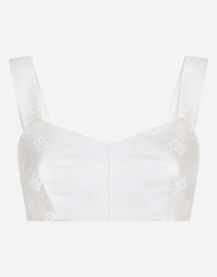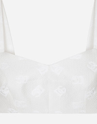 The DNA collection is distinguished by timeless shapes, bringing together three concepts: Sicilian flair, tailoring and sensuality. Nero Sicilia black and optical white predominate and pair with colors that catapult us onto the island of Sicily and make us dream. The designers channel the timeless wardrobe made up of creations that are instantly unmistakable in their simplicity, presenting us with sophisticated beauty loaded with meaning and symbolism that transcends fashion. Quilted jacquard top with all-over DG logo: • White • Sweetheart neckline • Sleeveless with shoulder straps • Stretch silk lining • Rear zipper and hook-and-eye fastening • The piece measures 9 cm from the center back on a size IT 40 • The model is 175 cm tall and wears a size IT 40 • Made in Italy External composition: 43% Cotton 34% Polyester 23% Silk Internal composition: 92% Silk 8% Spandex