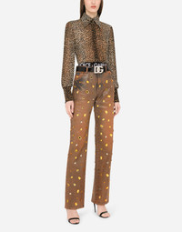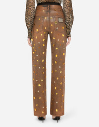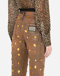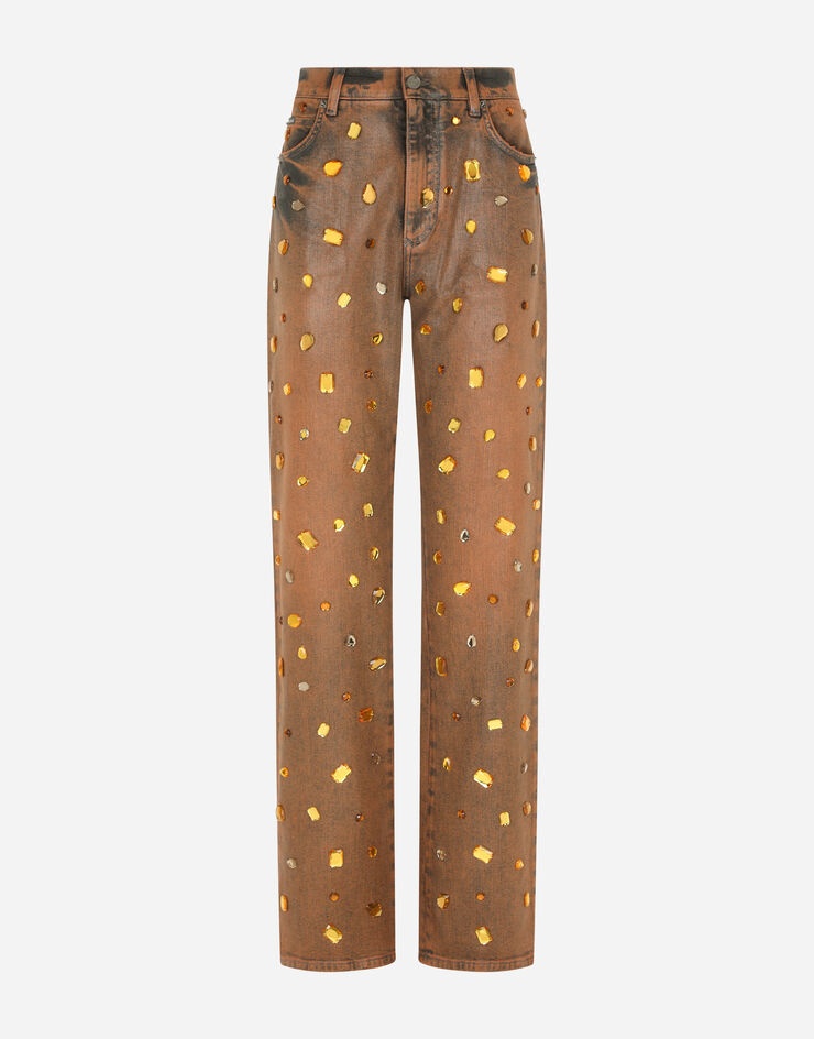 In this collection Dolce&Gabbana is rewriting the rules of fashion, women and modernity and infusing it with joy and optimism, creatively merging textures, colors and styles in a modern way and drawing inspiration from the 2000s. The result is an evocative journey back to the roots of the brand’s signature aesthetic, creating unique and fine garments with a modern feel, such as these faded denim jeans with colorful all-over rhinestone embellishment: • Regular rise • 5 pockets • Branded label on the coin pocket • Branded metal and leather plate • Inner leg: 90 cm • Hem: 25 cm • Metal button with logo and zipper • The model is 175 cm tall and wears a size IT 40 • Made in Italy Care And Details External composition: 98% Cotton 2% Spandex