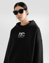 Jersey hoodie with rhinestone-detailed DG embellishment