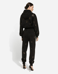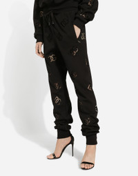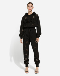The DNA collection is distinguished by timeless shapes, bringing together three concepts: Sicilian flair, tailoring and sensuality. Nero Sicilia black and optical white predominate and pair with colors that catapult us onto the island of Sicily and make us dream. The designers channel the timeless wardrobe made up of creations that are instantly unmistakable in their simplicity, presenting us with sophisticated beauty loaded with meaning and symbolism that transcends fashion. Cotton jersey jogging pants with cut-out and DG logo: • Black • Stretch drawstring waist • Welt pockets • Ribbed waistband and cuffs • Inner leg: 83 cm • Hem: 11 cm • The model is 175 cm tall and wears a size IT 40 • Made in Italy External composition: 71% Cotton 29% Polyester