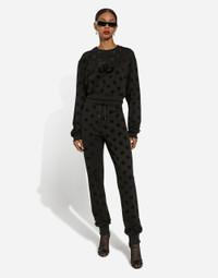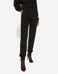 The DNA collection is distinguished by timeless shapes, bringing together three concepts: Sicilian flair, tailoring and sensuality. Nero Sicilia black and optical white predominate and pair with colors that catapult us onto the island of Sicily and make us dream. The designers channel the timeless wardrobe made up of creations that are instantly unmistakable in their simplicity, presenting us with sophisticated beauty loaded with meaning and symbolism that transcends fashion. Cotton jersey jogging pants with flocked DG logo print: • Black • Stretch drawstring waist • Single-welt pockets with zipper • Ribbed waistband and cuffs • Inner leg: 83 cm • Hem: 13 cm • The model is 175 cm tall and wears a size IT 40 • Made in Italy External composition: 100% Cotton