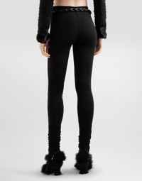 In the Fall/Winter 2025 Fashion Show Collection, shearling jackets, in fur-free versions, reveal slip dresses and create contrast' plays while denim welcomes fabric or Leo print inserts. Sweatshirts are the result of long experimentation with volumes. Evening looks become precious thanks to dresses with special embroideries and luminous touches of sequins and crystals. Sheepskin inserts also unite hats, shoes, and bags, including those with pockets. These jersey leggings offer a perfect mix of comfort and style, ideal for a casual yet refined look. Jersey leggings: • Black • The model is 175 cm tall and wears size 40 IT • Made in Italy External Composition: 68% Viscose, 28% Polyamide, 4% Elastane