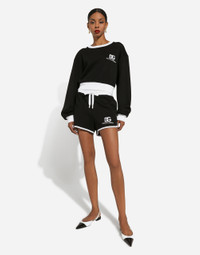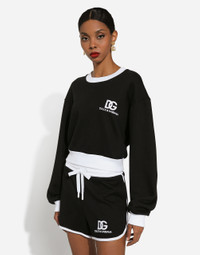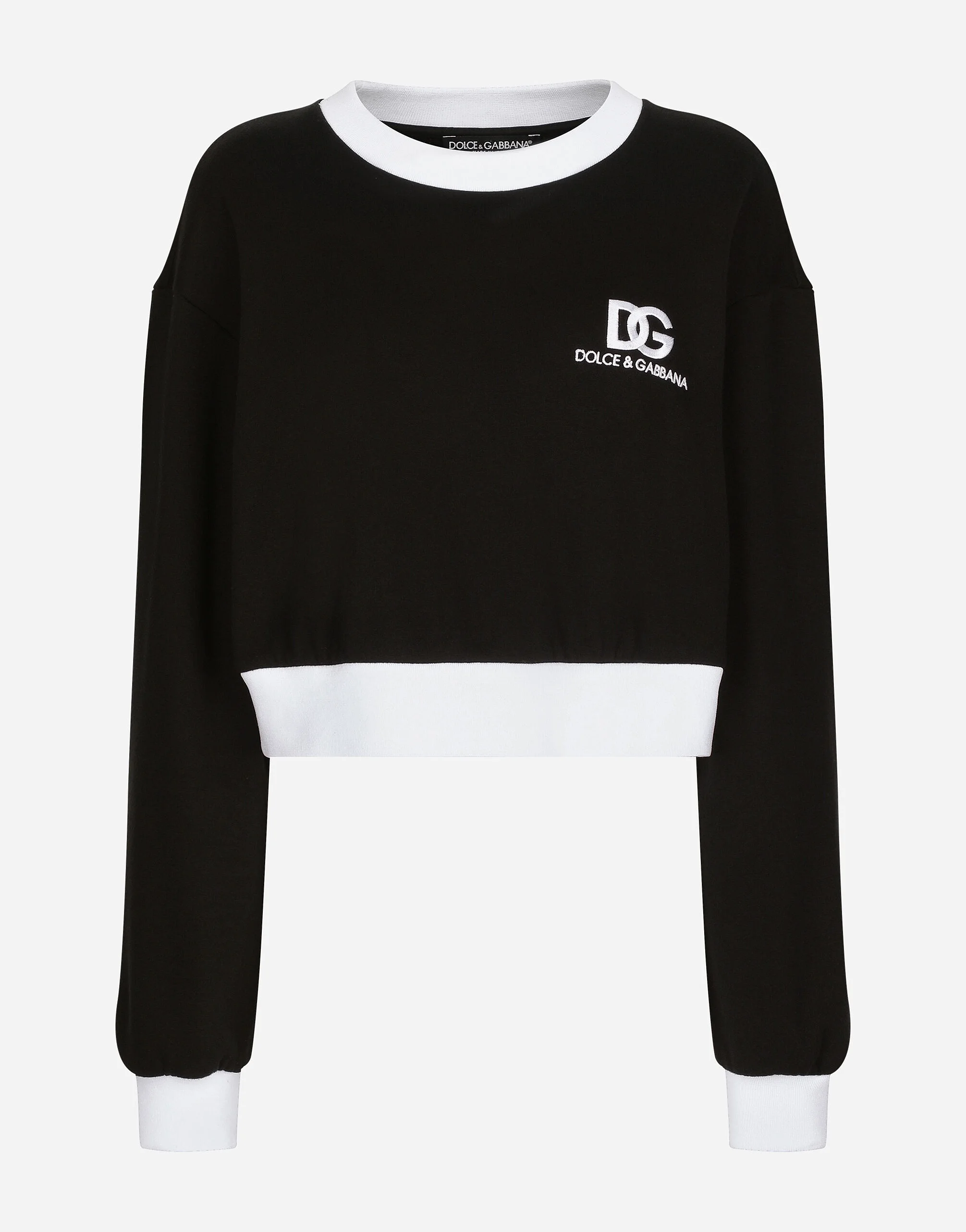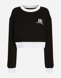 The DNA collection is distinguished by timeless shapes, bringing together three concepts: Sicilian flair, tailoring and sensuality. Nero Sicilia black and optical white predominate and pair with colors that catapult us onto the island of Sicily and make us dream. The designers channel the timeless wardrobe made up of creations that are instantly unmistakable in their simplicity, presenting us with sophisticated beauty loaded with meaning and symbolism that transcends fashion. Cotton jersey sweatshirt with DG logo embroidery: • Black • Round neck • Long sleeves • Ribbed neck and cuffs • Regular fit • The piece measures 50 cm from the center back on a size IT 40 • The model is 175 cm tall and wears a size IT 40 • Made in Italy External composition: 94% Cotton 6% Polyamide