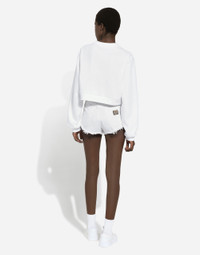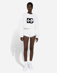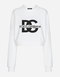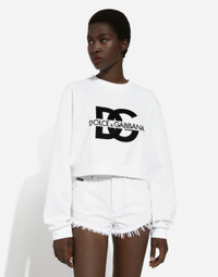 The DNA collection is distinguished by timeless shapes, bringing together three concepts: Sicilian flair, tailoring and sensuality. Nero Sicilia black and optical white predominate and pair with colors that catapult us onto the island of Sicily and make us dream. The designers channel the timeless wardrobe made up of creations that are instantly unmistakable in their simplicity, presenting us with sophisticated beauty loaded with meaning and symbolism that transcends fashion. Cotton jersey sweatshirt with carpet-stitch DG logo: • White • Round neck • Long sleeves • Ribbed neck and cuffs • Regular fit • The piece measures 50 cm from the center back on a size IT 40 • The model is 175 cm tall and wears a size IT 40 • Made in Italy External composition: 71% Cotton 29% Polyester