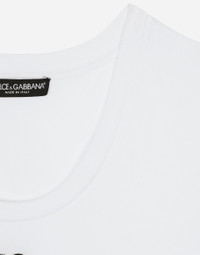 The DNA collection is distinguished by timeless shapes, bringing together three concepts: Sicilian flair, tailoring and sensuality. Nero Sicilia black and optical white predominate and pair with colors that catapult us onto the island of Sicily and make us dream. The designers channel the timeless wardrobe made up of creations that are instantly unmistakable in their simplicity, presenting us with sophisticated beauty loaded with meaning and symbolism that transcends fashion. Cotton jersey T-shirt with DG logo: • White • Round neck • Short sleeves • Ribbed neck and cuffs • Form fitting • The piece measures 60 cm from the center back on a size IT 40 • The model is 175 cm tall and wears a size IT 40 • Made in Italy External composition: 90% Cotton 10% Spandex