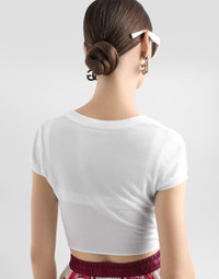 • V-neck • Short sleeves • Fine-rib trims • Cropped fit • The piece measures 39 cm from the rear seam on a size IT 40 • The model is 175 cm tall and wears a size IT 40 • Made in Italy Care And Details External composition: 100% Cotton