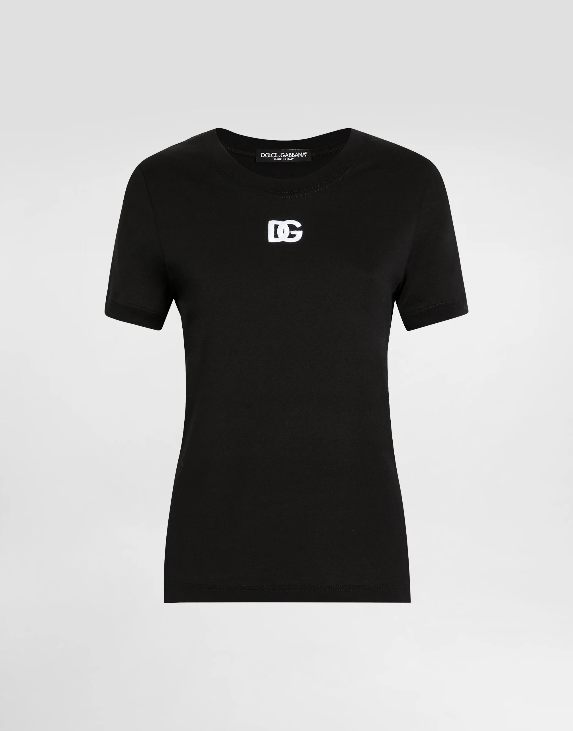 Dolce&Gabbana is creating a new DNA collection, using its style with a new concept of everyday elegance and apparel. Timeless, contemporary and traditional style, where sweatshirts, pants, T-shirts and sweaters are embellished by the DG logo, adding a touch of character to your outfits. Cotton jersey T-shirt with DG logo embroidery: • Black • Round neckline • Short sleeves • Folded ribbed neck and sleeve trims • Form fitting • The piece measures 60.5 cm from the back of the neck on a size IT 40 • The model is 175 cm tall and wears a size IT 40 • Made in Italy External composition: 100% Cotton