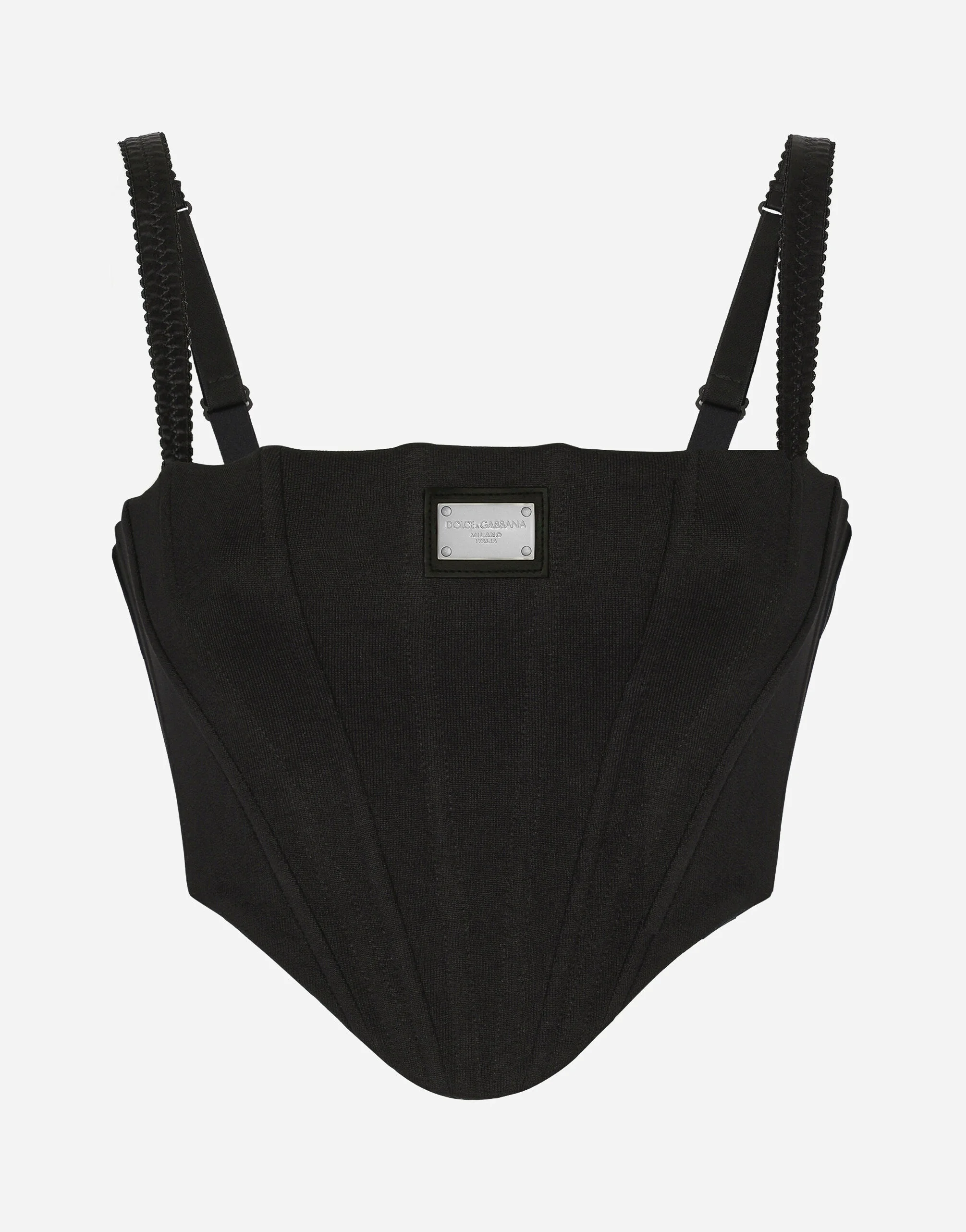 Cotton jersey top with straps and Dolce&Gabbana tag: • Black • Straight neckline • Sleeveless with adjustable stretch straps • Zipper fastening at the back • The piece measures 14 cm from the center back on a size IT 40 • The model is 175 cm tall and wears a size IT 40 • Made in Italy Care And Details External composition: 95% Cotton 5% Silk Internal composition: 100% Cotton