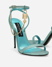 Featuring bold, contemporary allure, these Keira sandals come in foiled karung and feature charm-embellished chain detailing. Foiled karung sandals with chain and charm detailing: • Light blue • 105-mm heel with DG logo • Laminated leather insole with branded label • Foiled leather sole with logo • Item comes with a branded dust bag • Made in Italy External composition: 100% Karung Internal composition: 90% Goatskin 10% Viscose