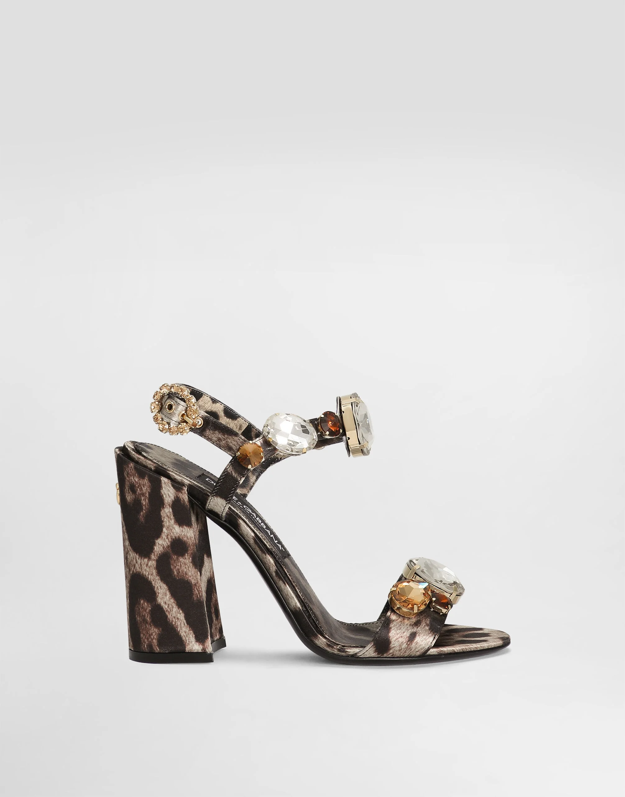 Crafted from satin with gemstone embellishment, these Keira sandals are feminine and elegant. Leopard-print satin Keira sandals with gemstone embellishment: • Leopard print • 105-mm heel • Adjustable strap with bejeweled buckle • Satin insole with branded label • Branded leather sole • Item comes with a branded dust bag • Made in Italy External composition: 100% Polyester Internal composition: 71% Goatskin 29% Polyester