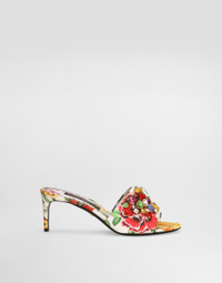 Iconic and the epitome of femininity, flowers are the stars of the new collection. Made from printed brocade, these Keira mules are feminine and elegant. Floral-print brocade mules with gemstone embellishment: • Multi-colored • 60-mm heel • Printed kidskin insole with branded label • Branded leather sole • Item comes with a branded dust bag • Made in Italy External composition: 95% Cotton 5% Spandex Internal composition: 80% Goatskin 20% Cotton