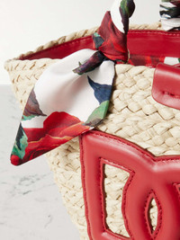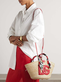 EDITORS'NOTES Dolce&Gabbana's 'Kendra' tote is part of the label's 'Flower Power' collection. It's woven from straw and detailed with a large leather logo, plus floral-print silk-twill wrapped like a scarf around the handles. The joyful design makes it the perfect choice for summer and you'll have plenty of space for your essentials - think phone, wallet and your current book. SIZE & FIT This item’s measurements are: - Min. Strap Length: 111cm / 43.7in - Handle Drop: 8cm / 3.1in - Depth: 15cm / 5.9in - Max. Strap Length: 128cm / 50.4in - Height: 18cm / 7.1in - Width: 33.5cm / 13.2in DETAILS & CARE - Beige straw, red leather (Cow), multicolored silk-twill - Top handles - Internal card pocket and zipped pocket - Twill lining - Drawstring fastening