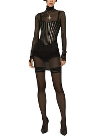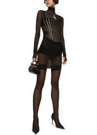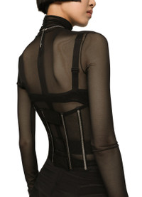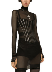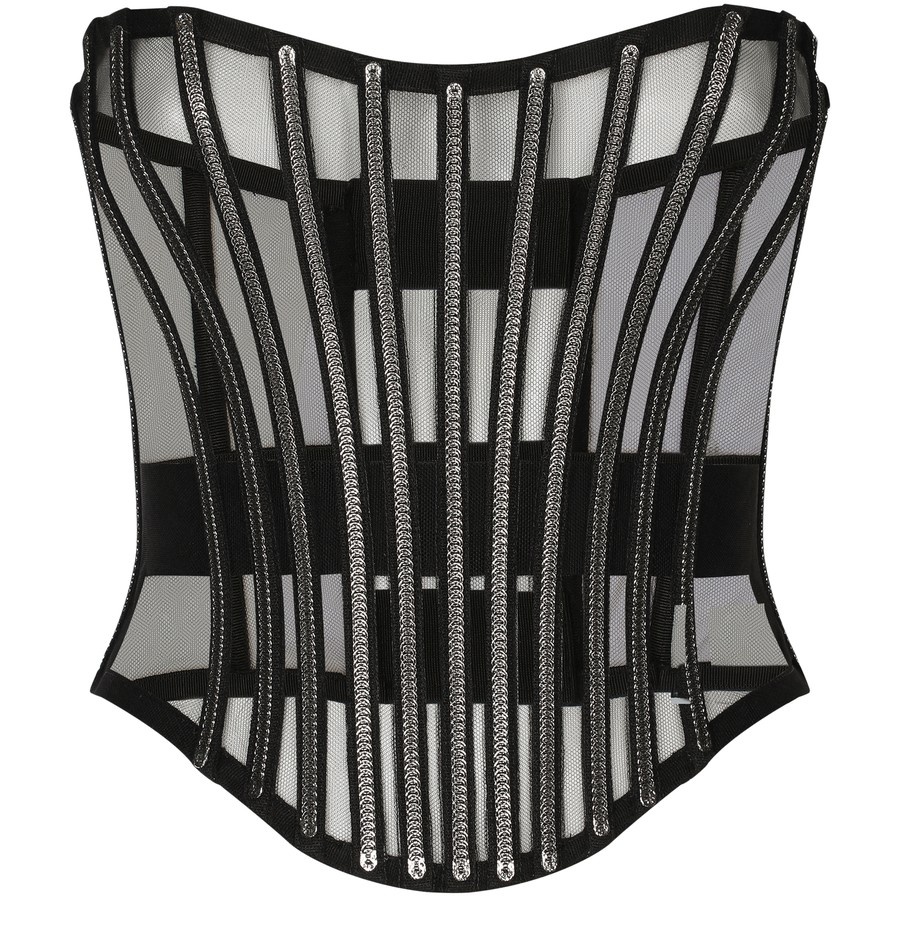 Tulle corset belt with boning:|• Gros-grain ribbons and small hook-and-eye fastenings|• “Kim Dolce&Gabbana” inner label|• Made in Italy DESCRIPTION - Sleeveless top - Neckline - Bare shoulder - Slim fitting - Metal finish - Open weave DETAILS AND CARE MATERIAL: 100% Polyamide COLOR: black HEIGHT: 0.1 cm / 0 " WIDTH: 0.1 cm / 0 " COUNTRY OF MANUFACTURE: Italy PRODUCT CODE: DXG42TVVBCKTA1AA00