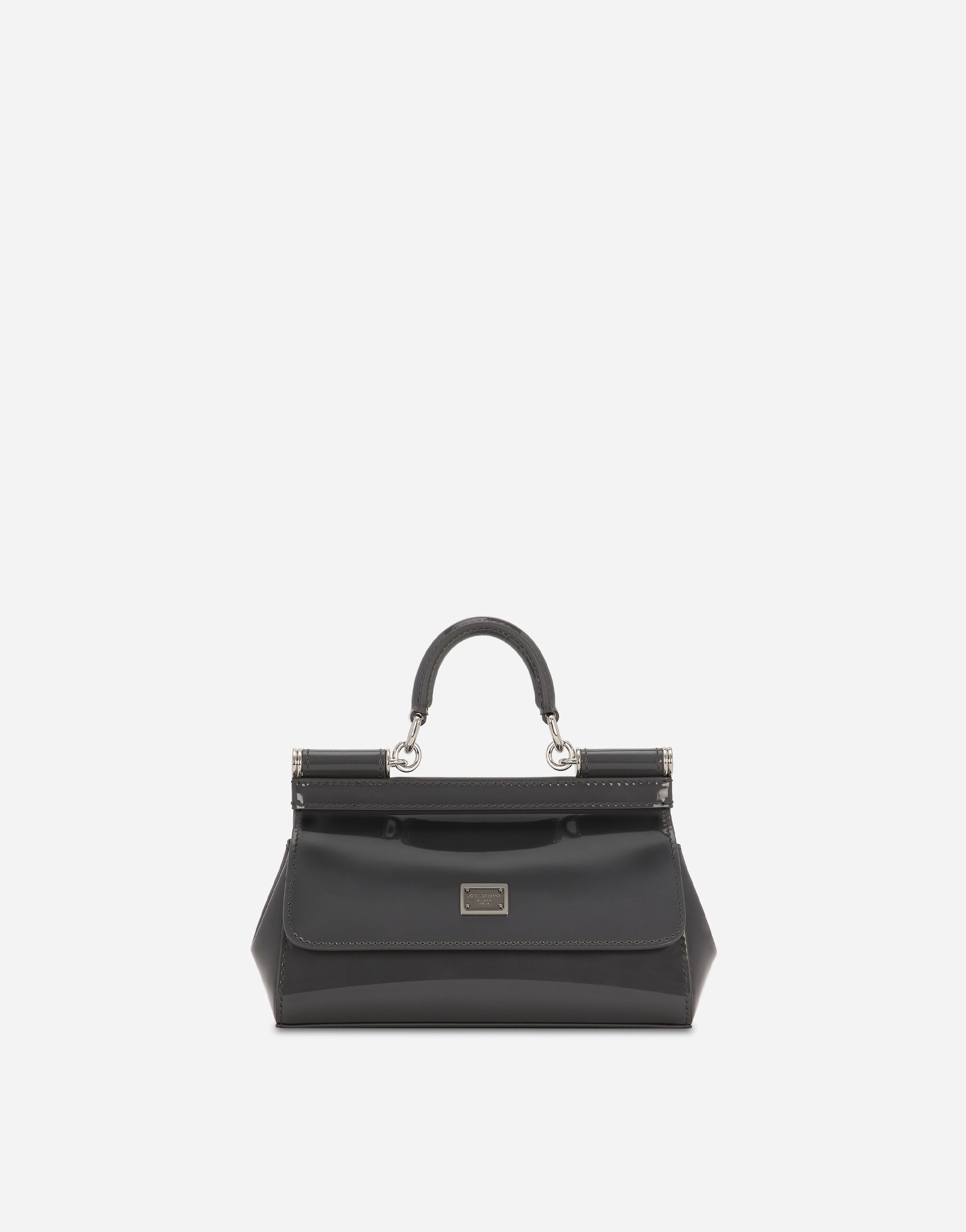 The fusion and alchemy between the history and creativity of D&G’s designers and the contemporary vision of Kim Kardashian, style and beauty icon, lie at the heart of the new Runway collection. The brand’s origins and invaluable archives have been reworked and reinterpreted to imbue Dolce&Gabbana’s signature style with new life. Small Sicily bag in polished calfskin with palladium-plated metal logo tag: • Gray • Front flap with hidden double magnetic fastening • Logo tag featuring two metal plating finishes • Top handle and adjustable, detachable strap in polished calfskin • Printed fabric lining and flat pocket • Item comes with a branded dust bag • Measurements: H13 x W19 x D6 cm • Made in Italy External composition: 100% Calfskin