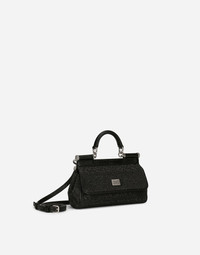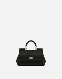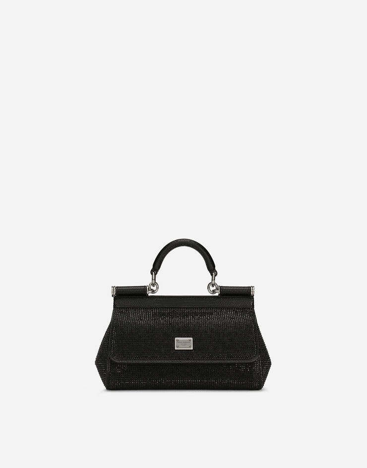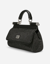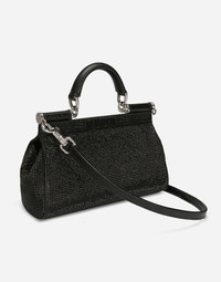 Small Sicily bag in satin with all-over rhinestones and the palladium-plated metal logo tag: • Front flap with hidden double magnetic fastening • Branded tag • Top handle and adjustable, detachable strap in iguana-print calfskin • Satin lining and flat pocket • Item comes with a branded dust bag • Measurements: 13 x 19 x 6 cm • Made in Italy Care And Details External composition: 55% Viscose 25% Silk 20% Calfskin Internal composition: 50% Viscose 25% Polyurethane 10% Calfskin 10% Polyamide 5% Polyurethane