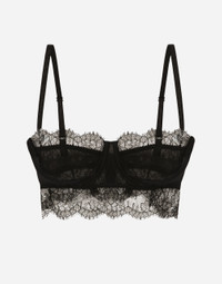 Lace balconette bralette: • Black • Sweetheart neckline • Underwired cups • Unlined • Adjustable stretch straps with Dolce&Gabbana logo • Adjustable hook-and-eye fastening on the back • The model is 175 cm tall and wears a size IT 40 • Made in Italy Care And Details External composition: 80% Silk 12% Cotton 5% Spandex 3% Polyamide