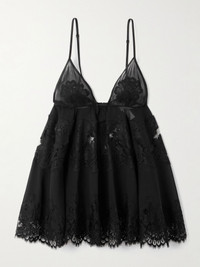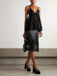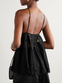 Dolce&Gabbana's camisole is reminiscent of romantic lingerie. Made from black chiffon, it's trimmed with delicate lace to reveal glimpses of skin and has triangle cups suspended from slim, adjustable straps. Wear yours with tailored pants and heels. Size & Fit - 1 = X-Small - 2 = Small - 3 = Medium - 4 = Large - 5 = X-Large - Fits true to size, however those who are between sizes should take the smaller size - Designed to be fitted at the bust, loose at the waist and hip - Fully adjustable shoulder straps - Lightweight, semi-sheer, slightly stretchy fabric - Model is 180cm/ 5'11" and is wearing the designer's size 1 Model measurements: - Bust: 75cm/ 29.5" - Waist: 60.5cm/ 24" - Hip: 88.5cm/ 35" Details & Care - Black chiffon and lace - Concealed hook and zip fastening at back - 31% silk, 30% cotton, 18% viscose, 16% nylon, 5% elastane - Unlined - Dry clean