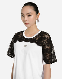 In the FW 24/25 DNA Collection, the rules of classic tailoring have been reworked with an innovative feel. New raschel weave techniques feature on micro-jackets and coats, and original textures are woven on trench coats, skirts, jacquard suits and shirts. The color palette made up of Nero Sicilia black, Milky White and Ocean Blue is also original. The iconic bags in fine nappa leather and “Pyton FC Machine” finish off the looks. Jersey T-shirt with lace inserts: • White • Round neck • Short sleeves • Boxy fit • The piece measures 70 cm from the center back on a size IT 40 • The model is 175 cm tall and wears a size IT 40 • Made in Italy External composition: 88% Cotton 08% Viscose 04% Polyamide