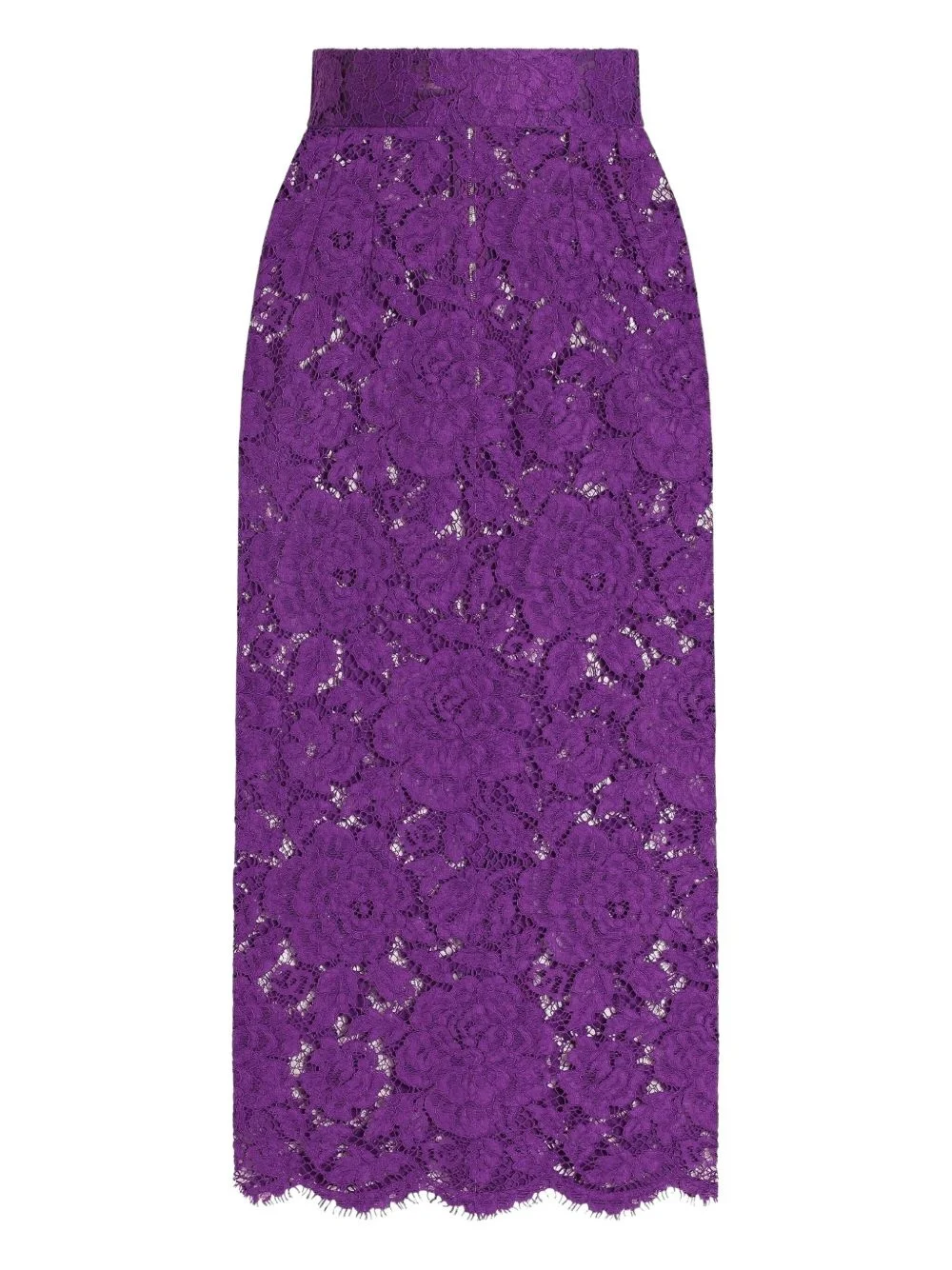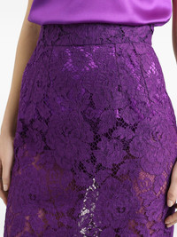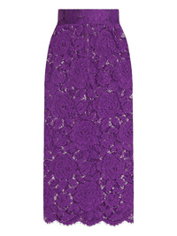 DNA lace-detailing midi skirt Highlights - Amaranth purple - Rear zip fastening - High-waisted - Curved hem - Mid-length Made in Italy Composition Outer: Viscose 41%, Cotton 35%, Polyamide 24% Lining: Silk 91%, Spandex/Elastane 9%
