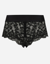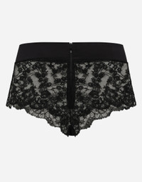 In the “WOMAN SS 24” Collection, the imagery of old Sicily interacts with the masculine, with sensual shapes, lace, nude tones and delicate overlays, to create pieces that move amid clean silhouettes, the elegance of the 1960s, the contrasts of black and white and luxurious textures. The designers are reworking their signature style and their iconic Sicilia black color to convey an aware, seductive and confident Sicilian WOMAN who is imbued with sensuality. Lace high-waisted panties with satin waistband: • Black • Regular rise • Loose fit • Zipper fastening at the back • Made in Italy Given the product characteristics, unfortunately some items in the underwear category cannot be returned. For more information, please consult the Returns and Refunds section. External composition: 94% Silk 6% Spandex