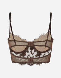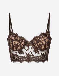 Lace lingerie top: • Brown • Unlined • Thin adjustable straps • Underwired cups • Double band with hook-and-eye fastenings on the back • The model is 175 cm tall and wears a size IT 40 • Made in Italy Care And Details External composition: 45% Cotton 30% Polyamide 14% Viscose 11% Spandex