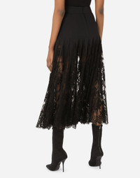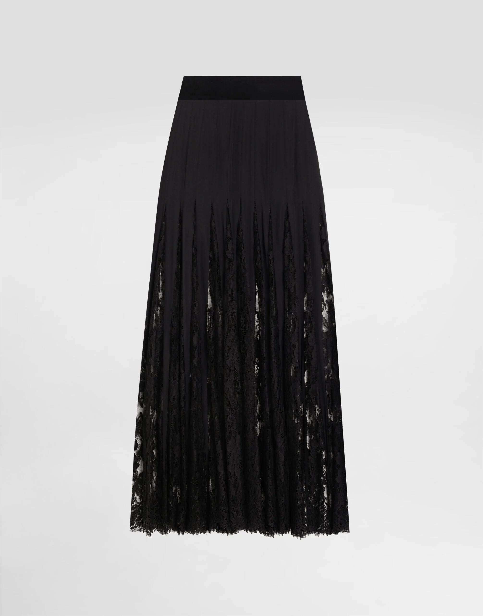 Sensual Nero Sicilia black adorns this luxurious skirt in a fine patchwork of silk charmeuse and Chantilly lace. It is sure to add a touch of class to your looks: • High-waisted • Unlined • Rear zipper and hook-and-eye fastening • The piece measures 85 cm - 33.5 inches from the waist down on a size IT 40 • The model is 175 cm - 68.9 inches tall and wears a size IT 40 • Made in Italy Care And Details External composition: 52% Cotton 28% Silk 18% Polyamide 2% Spandex
