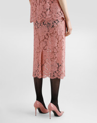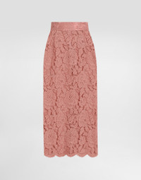 The DNA Women's Collection introduces a new dimension of femininity, declined in shades of rose quartz, balancing transparency and opacity, lightness and structure, formality and sensuality. Geometric Dolce Jackets, jacquard pajamas and floral brocade dresses are interwoven with hyper-romantic designs. DG print becomes an iconic statement while cordonetto lace and hints of Black Sicily embody the essence of decisive and, at the same time, romantic femininity. Sheath skirt in logoed floral cord lace: • Pink • High waist • Petticoat in stretch silk crepe de chine • Back closure with zip and hook • The article measures 75 cm from the waist in size 40 IT • The model is 175 cm tall and wears size 40 IT • Made in Italy External composition: 41% Viscose 35% Cotton 24% Polyamide Internal composition: 91% Silk 09% Elastane