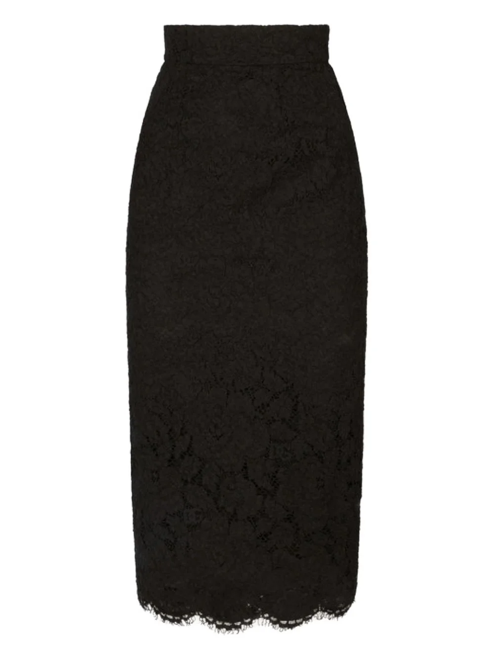 lace midi skirt Highlights - Black - Lace construction - High rise - Scalloped hem Made in Italy Composition Fabric 100% Washing instructions Read Manufacturer Guidelines