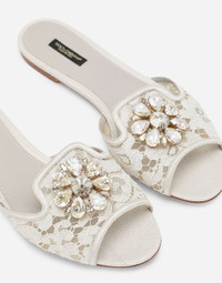 Lace rainbow slides with brooch detailing