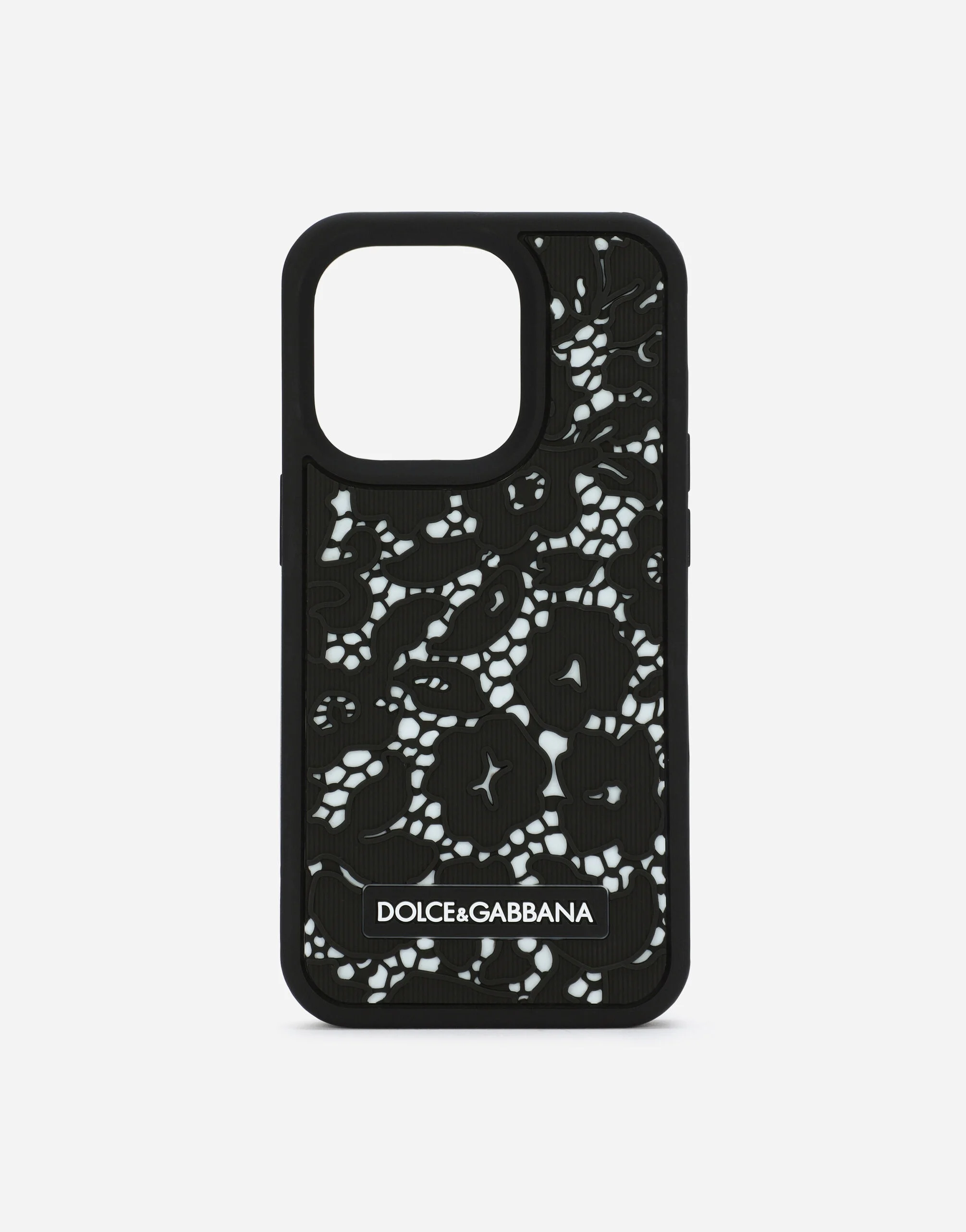 This new iPhone 14 Pro cover comes in 100% rubber. Featuring the iconic micro-injected lace design, it features the Dolce&Gabbana logo. Lace rubber iPhone 14 Pro cover: • Opening for the camera and side buttons • Measurements: 15.3 x 7.7 cm • Made in Italy External composition: 100% Silicone
