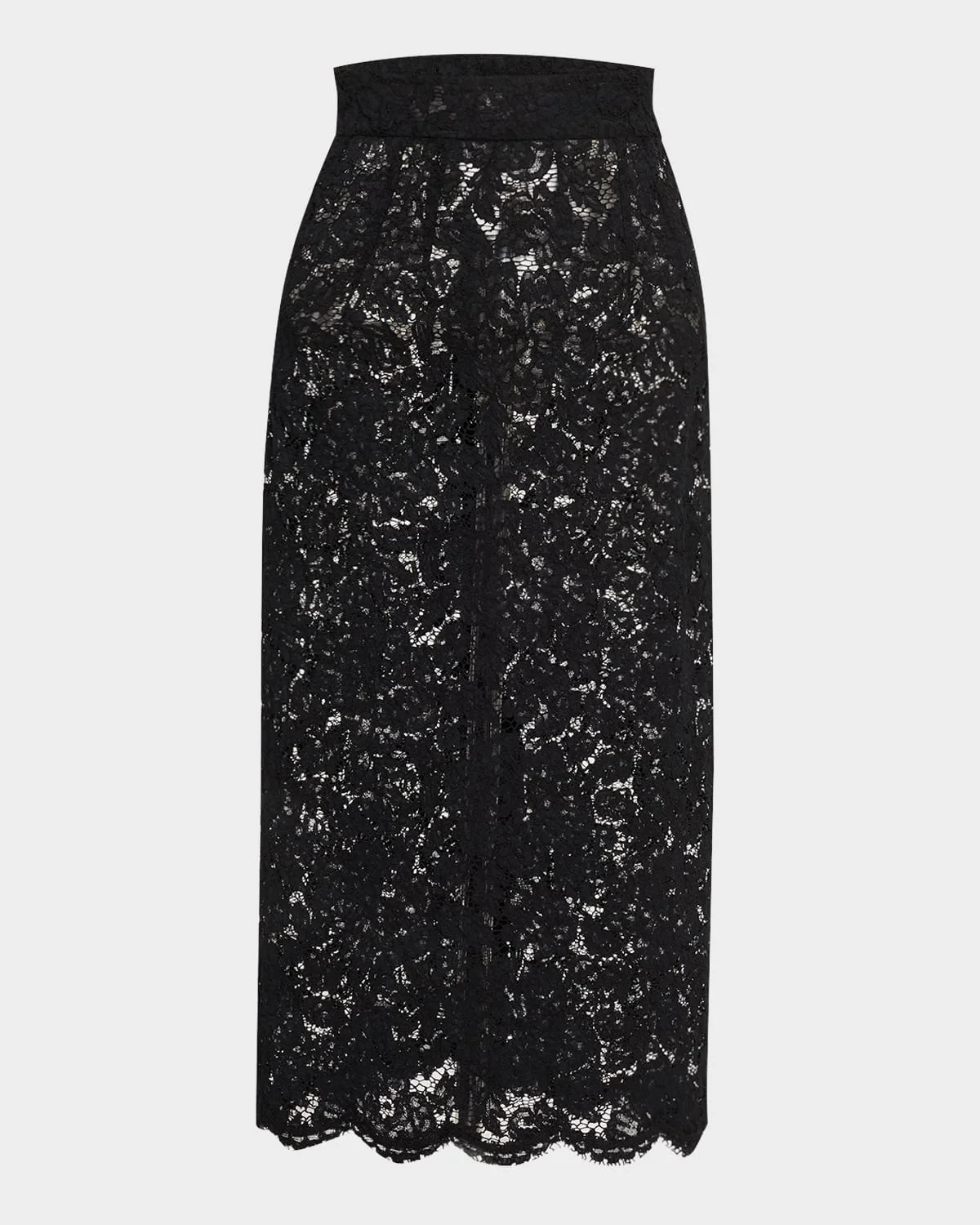 Dolceamp;Gabbana lace skirt featuring scalloped hem High waist Skirt falls straight from hip to hem Hem falls below the knee Centerback vented hem Invisible back zip Viscose/cotton/polyamide Made in Italy