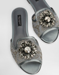 Bianca slippers in Taormina lace with jeweled embellishment. • 0.2-inch heel • Insole in leather and satin with logoed label • Logoed leather sole • Packaging in theme with article • Made in Italy Care And Details External composition: 64% Viscose 21% Silk 13% Cotton 2% Polyamide Internal composition: 38% Goatskin 26% Viscose 24% Polyamide 12% Silk