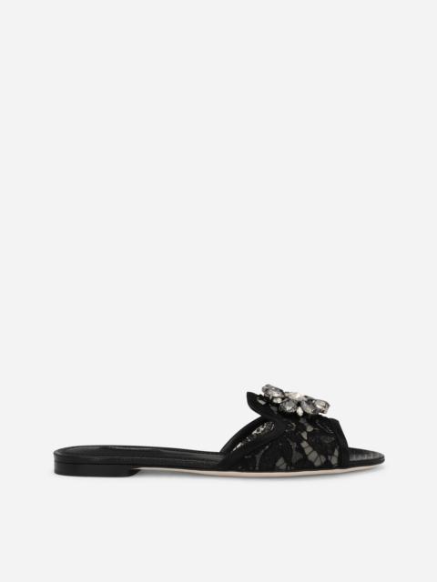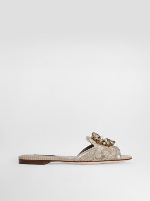 Bianca slippers in Taormina lace with jeweled embellishment. • 0.2-inch heel • Leather insole with logoed label • Logoed leather sole • Packaging in theme with article • Made in Italy Care And Details External composition: 59% Viscose 29% Cotton 8% Silk 4% Polyamide Internal composition: 56% Goatskin 27% Calfskin 17% Polyamide
