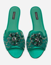 Lace slippers with crystals