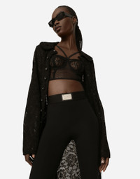 Lace-stitch coat: • Black • 14-gauge knit • Decorative DG logo buttons • Unlined • Press-stud fastenings • The piece measures 94 cm from the shoulder seam on a size IT 40 • The model is 175 cm tall and wears a size IT 40 • Made in Italy Care And Details External composition: 76% Viscose 24% Polyamide