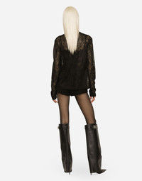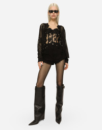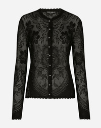Lace-stitch jacquard cardigan: • Black • 16-gauge knit • Long sleeves • Regular fit • Covered button fastenings and DG logo • The piece measures 58 cm from the shoulder seam on a size IT 40 • The model is 175 cm tall and wears a size IT 40 • Made in Italy Care And Details External composition: 70% Viscose 30% Polyester