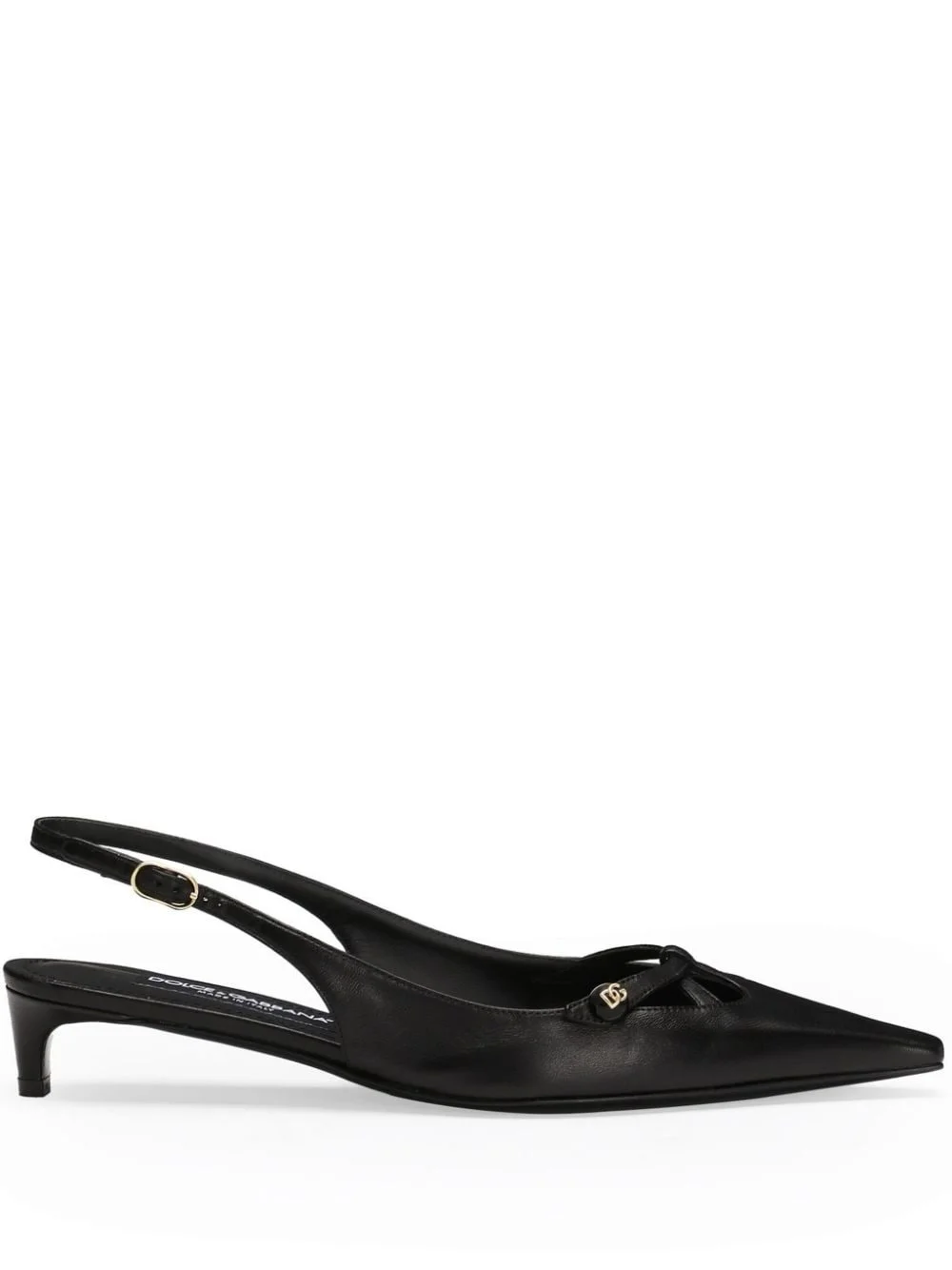 DNA 30mm slingback pumps Highlights - Black - Leather - Gold-tone logo plaque - Slingback strap - Pointed toe - Buckle fastening - Low heel - Logo tag on insole Made in Italy Composition Sole: Calf Leather 100% Outer: Lambskin 100% Lining: Goat Skin 80%, Lambskin 20% SIZE & FIT Measurement HEEL 1.18 in(3 cm)