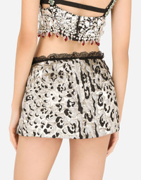 In this collection Dolce&Gabbana is rewriting the rules of fashion, women and modernity and infusing it with joy and optimism, creatively merging textures, colors and styles in a modern way and drawing inspiration from the 2000s. The focus is on being sensual and positive and the skirts have gotten shorter to let the legs become the stars and enhance all your femininity: • Regular rise • Stretch silk satin lining • Rear zipper and hook-and-eye fastening • The piece measures 40 cm from the waist down on a size IT 40 • The model is 175 cm tall and wears a size IT 40 • Made in Italy Care And Details External composition: 66% Polyester 20% Metallic Polyester 8% Silk 6% Polyamide Internal composition: 92% Silk 8% Spandex