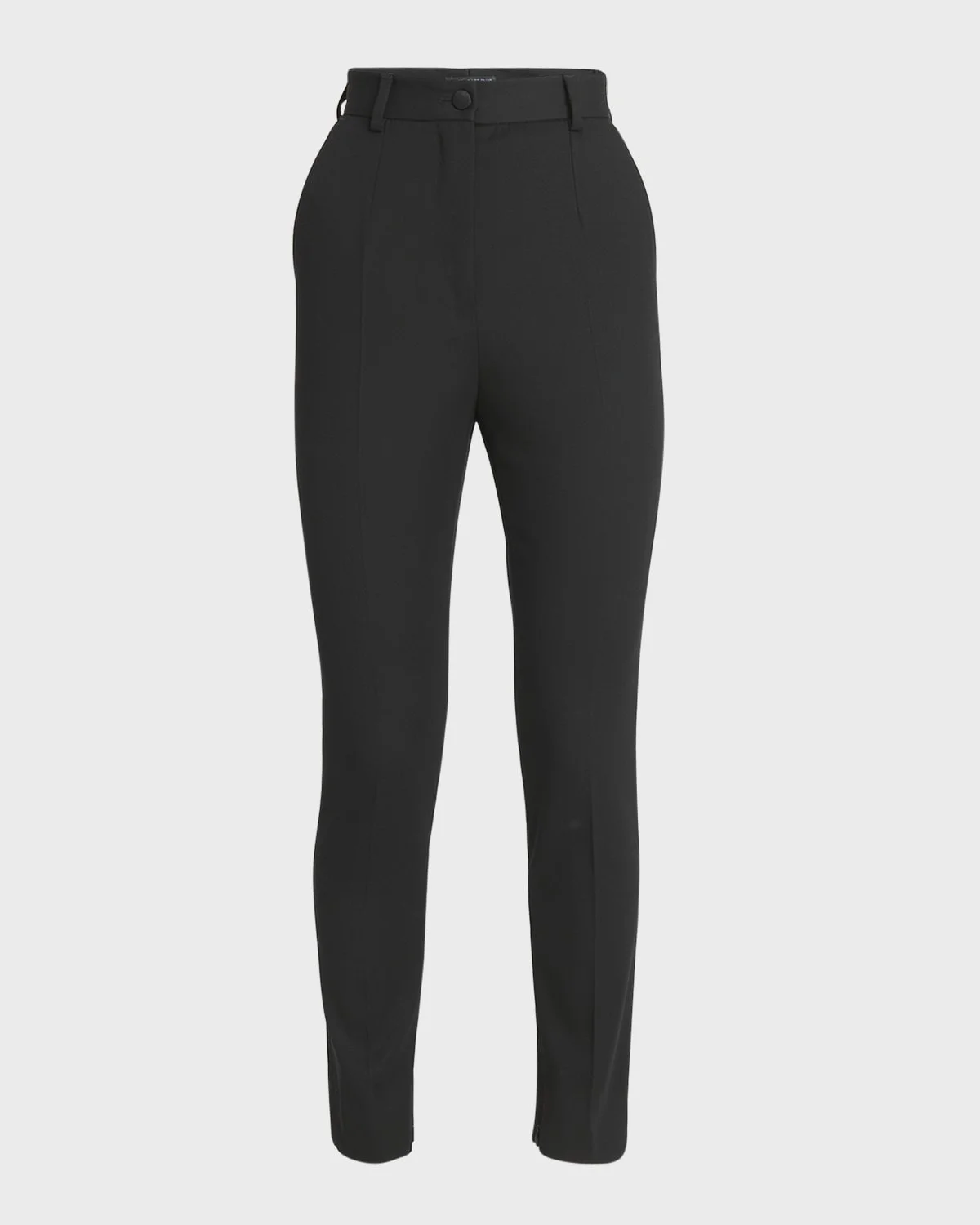 Dolce & amp;Gabbana "Lana" pants in gabardine Mid rise sits high on hip Flat front Side slip pockets; back welt pockets Straight legs Full length Button/zip fly; belt loops Virgin wool/silk/polyester Made in Italy Model is 5 & apos;10"/177cm.
