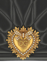 large Devotion quilted shoulder bag Highlights - Black - Nappa leather - Quilted - Signature sacred heart plaque - Gold-tone hardware - Sliding chain-link shoulder strap - Foldover top with magnetic fastening - Main compartment - Internal zip-fastening pocket - Internal logo plaque - Leather lining - This piece comes complete with a protective dust bag. Made in Italy Composition Outer: Lamb Skin 100% SIZE & FIT Measurement WIDTH 9.84 in(25 cm) HEIGHT 6.88 in(17.5 cm) DEPTH 2.16 in(5.5 cm)